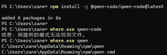 在终端输入 where.exe qwen(Windows)或 which qwen(Mac),获取qwen命令的完整路径。