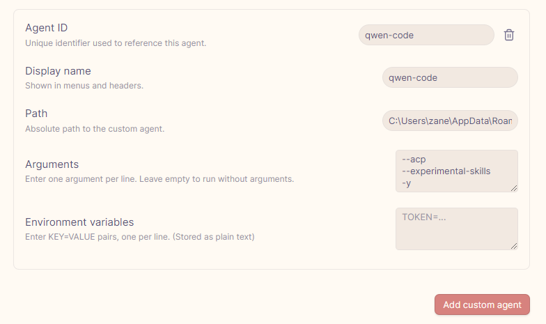 C:\Users\[你的用户名]\AppData\Roaming\npm\qwen.cmd(这里填你刚才获取的路径) - Arguments: